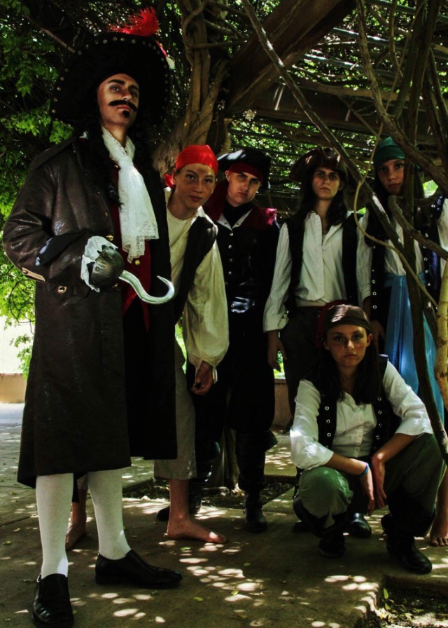 The mostly-fearsome pirate crew. Again, Jake looks too tall.